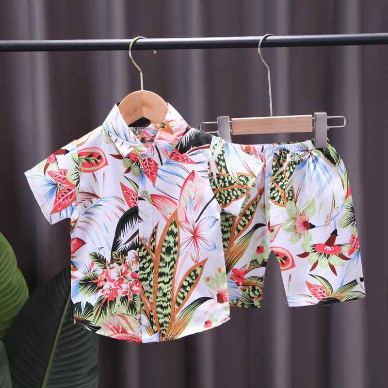 子供用シャツ & パンツ セット 半袖Tシャツ 花柄プリント 東南アジア風 ベビー服 薄手 綿100% 80 90 100 110cm