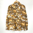 【中古】 Alife Carifornia 柄シャツ 長袖 ボタンダウンシャツ 総柄 レトロ カジュアル 薄手 メンズ 実寸参照 ブラウン系 アルフィ トップス A3954◆