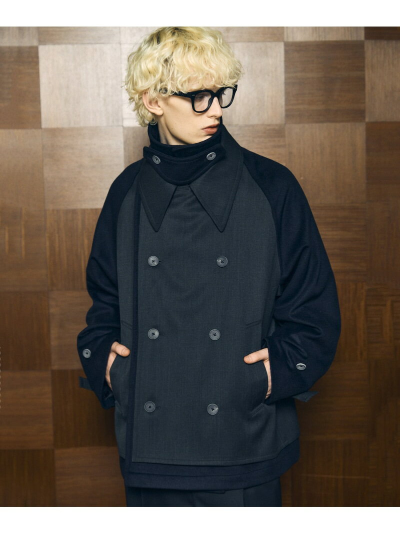 MAISON SPECIAL Layering Double Breasted Prime-Over Short Coat メゾンスペシャル ジャケット・アウター ピーコート グレー ブラック【送料無料】