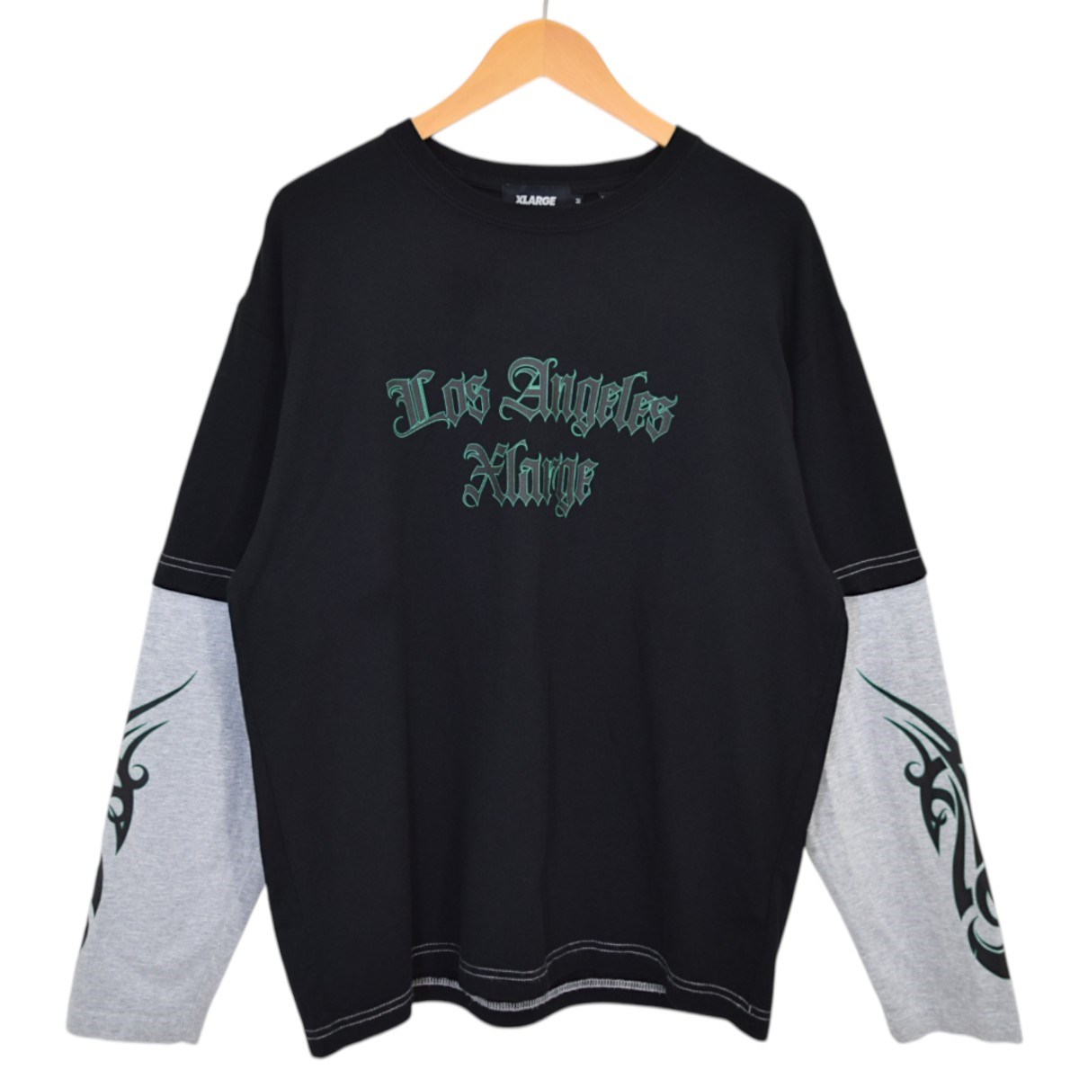 【中古】X-LARGE TRIBAL LAYERED L/S TEE レイヤードロングスリーブカットソー ブラック×グレー サイズ:M 【110825】(エクストララージ)