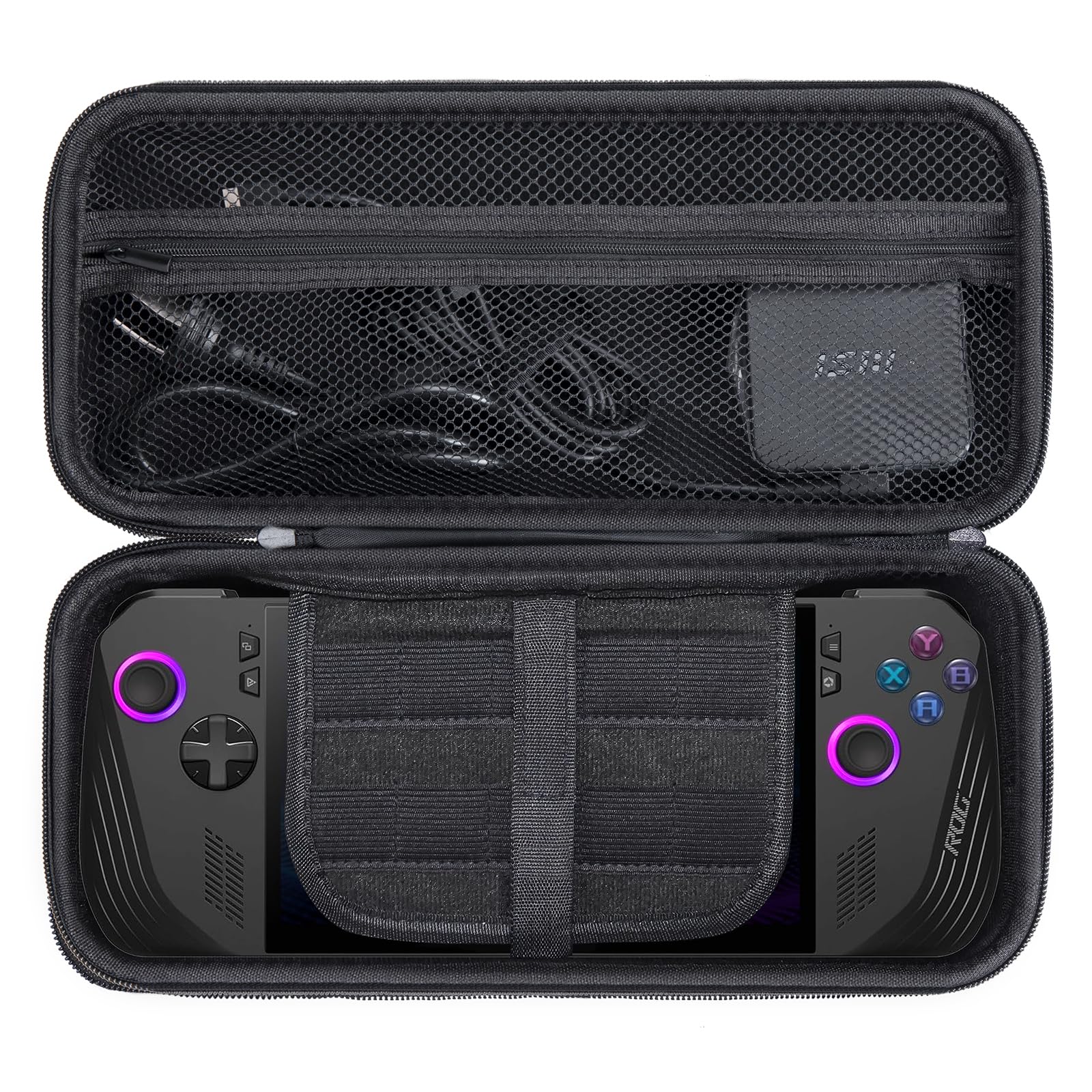 -/Large/Ally X・完璧にフィット収納ケースはASUS ROG ALLY X専用設計で、本体と付属品を一括収納可能。外形寸法:31.0x13.0x8.0CM。・全面保護高品質EVA素材の外層が硬く、耐衝撃性と耐傷性に優れ、磨耗を防ぎます。スプラッシュや汚れにも強く、手触りも良好。内部の柔らかい裏地がASUS ROG ALLY Xの擦り傷を効果的に防止します。・持ち運び便利快適なハンドストラップを設計し、人間工学に基づいたデザインで、いつでもどこへでも持ち運びやすくなっています。・弾性メッシュポケットファスナー付き弾性メッシュポケットはアクセサリーを収納でき、ファスナーの布製ラベルがROG ALLYを保護。粘着力の強いベルクロでROG ALLY Xをしっかり固定し、取り出しも簡単です。ご注意:ケースのみの販売(ASUS ROG ALLYや付属品は含まれません)。・注意この商品はケースのみの販売です。ゲーム機およびその他の付属品は含まれておりません。