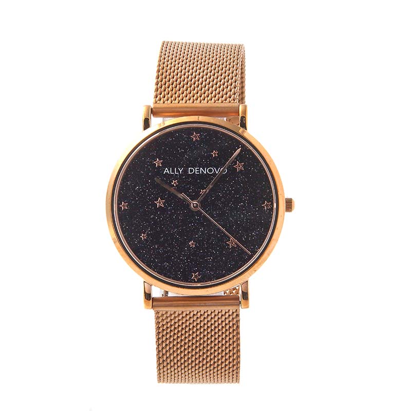 【 在庫一掃セール対象 】18% OFF(2024年前期当店平均価格比)腕時計 シンプル 星 夜空 おしゃれ ALLY DENOVO アリーデノヴォ af5017-4 STARRY NIGHT ウォッチ クオーツ ネイビー ローズゴールド ブラック アナログ レディース プレゼント 人気 並行輸入品