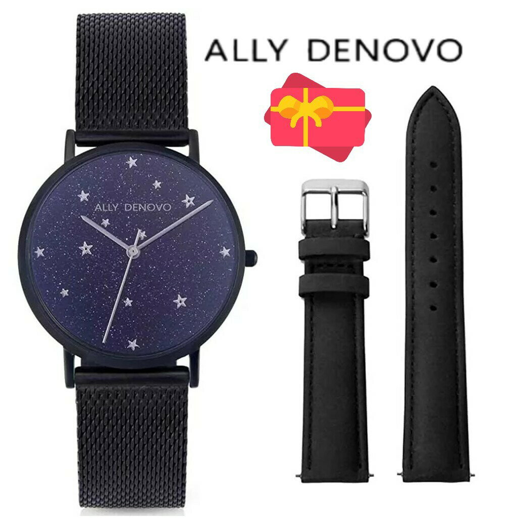 【ALLY DENOVO】 腕時計 AF5017-2 アリーデノヴ STARRY NIGHT BOX 36mm アベンチュリン・ブルーストーン Black / Black メンズ レディース ウォッチ・プレゼント 並行輸入品 プレゼント 記念日