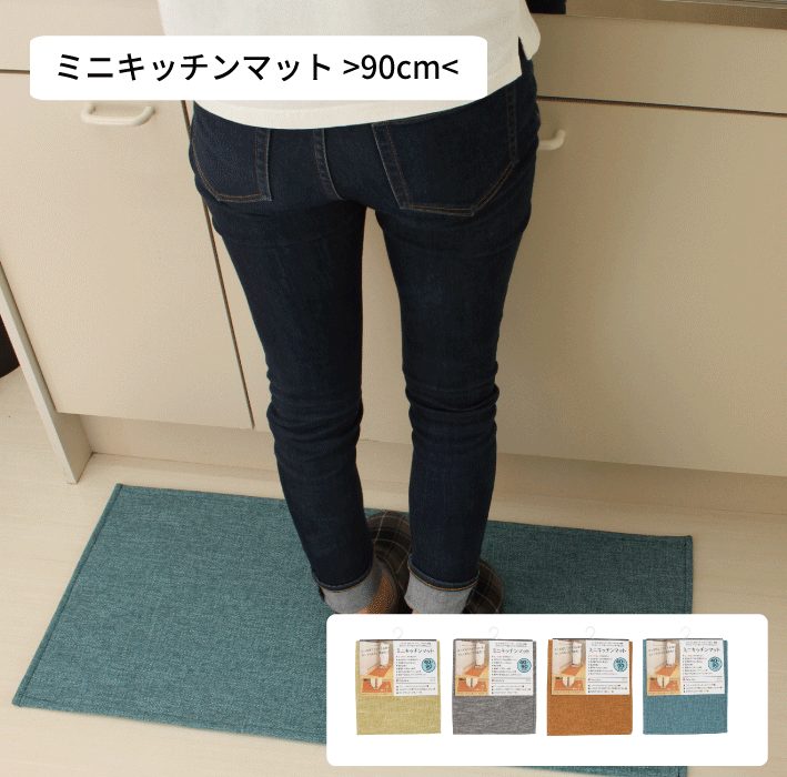 【廃番。急遽完売の場合有】撥水加工 ミニ キッチンマット 90cm はっ水 撥水 加工 生地 ファブリック風 洗える 滑り止め付き クッション性 裏面すべりにくい加工 乾きが早い 水はじく 薄手 段差少ない PallyPally マット 台所マット 足元マット フロアマット キッチンマット