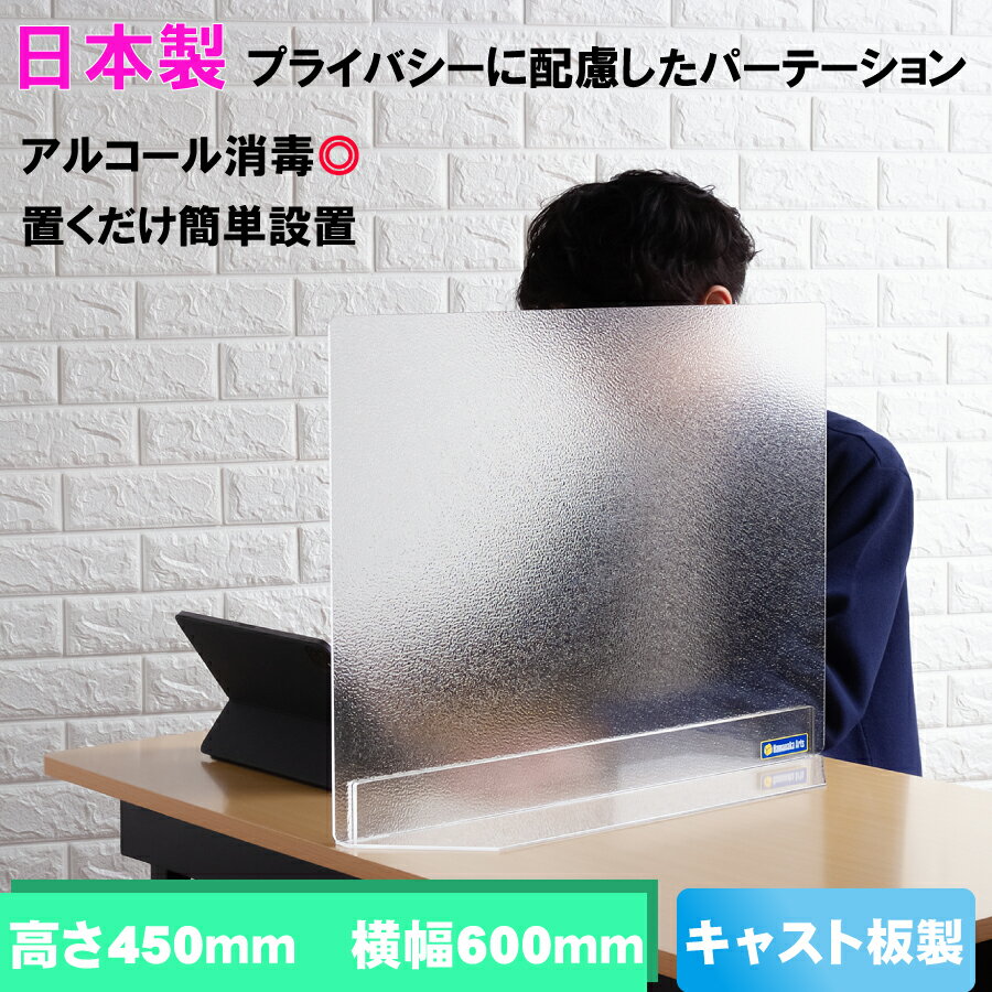 【日本製】 高さ450mm×横幅600mm 厚み5mm アクリル パーテーション パーティション コロナウイルス対策用 アクリル板 間仕切り まん延防止 飛沫感染予防用 アルコール消毒可 自立タイプ 病院 窓口業務 オフィス用 衝立 60cm 450×600 自立式 長期使用向きでコスパ良し