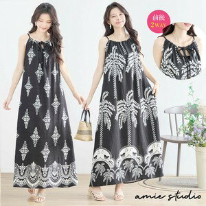 【即日発送】amie studio(TRUBE)【M〜L】リゾートモチーフプリントギャザーマキシワンピース(N82-388/N82-389)普段着 おしゃれ着(ワンピース単品)ミセスファッション 大人可愛い 30代 40代 50代 60代 若見え 洋服 婦人服 可愛い服 春夏