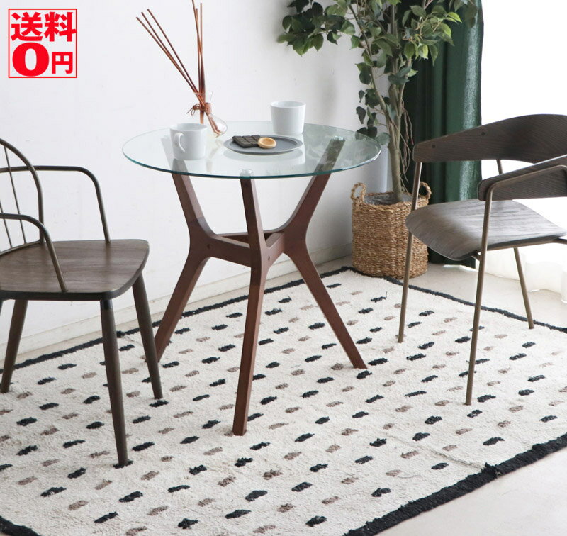 カフェテーブル ガラステーブル 丸 70 70cm 高さ70cm 円形 ラウンド AMOR アモール ウォールナット 無垢材 天然木 木製 脚 おしゃれ コンパクト 小さめ 北欧 シンプル モダン 東馬 一人暮らし リビング ダイニング ダイニングテーブル カフェ