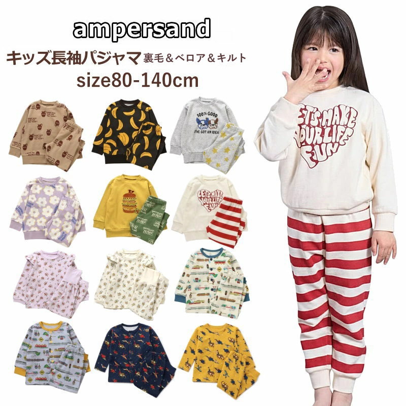 2025年 秋冬新作【ampersand 長袖パジャマ】アンパサンド パジャマ ワンマイルウェア 寝間着 部屋着 ルームウエア 腹巻き 裏毛 ベロア ニットキルト キッズ 長袖 【男の子】【女の子】【秋冬】