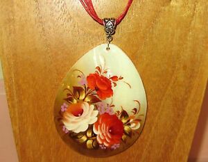 【送料無料】ジュエリー・アクセサリー ズショトヴォレッドペンダントオレンジホワイトロシアハルpendentif zhostovo rouge orange blanc grand fleurs russe main peint coque