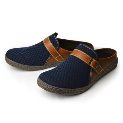 アンタレス Antares サボサンダル メンズ 編み込み チェック柄 サンダル クロッグサンダル (ネイビー)