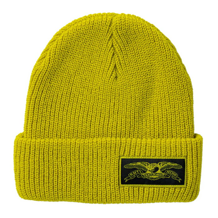 【BEANIE/ 帽子/ スケートボード】【送料無料】ANTIHERO SKATEBOARDS (アンチヒーロー・スケートボード) STOCK EAGLE LABEL CUFF BEANIEYELLOW / BLACKビーニー / アンタイヒーロー