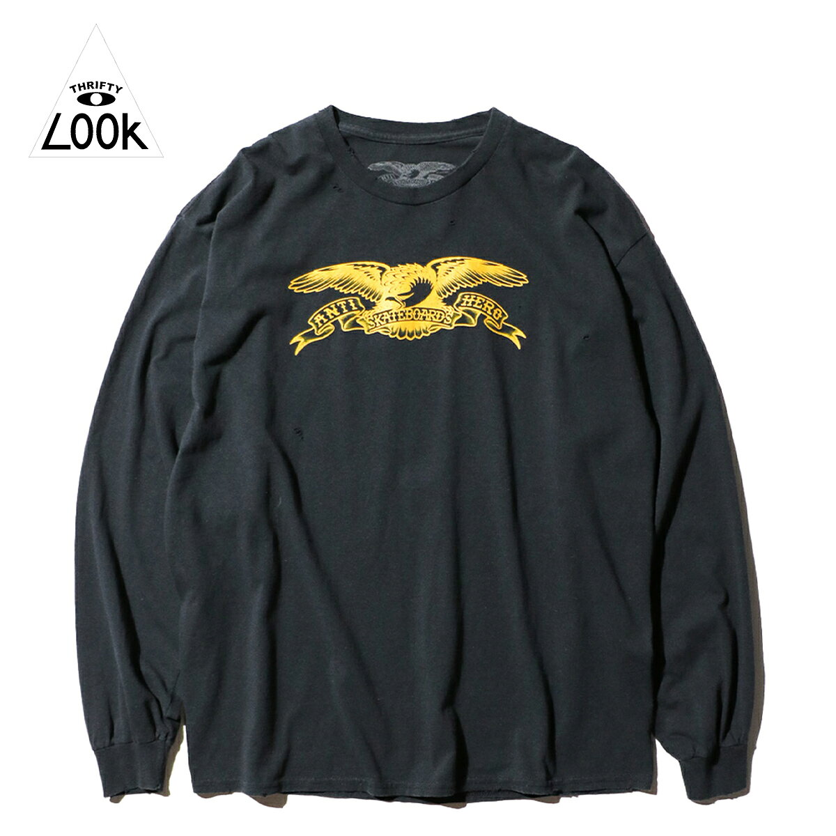 【THRIFTY LOOK / スリフティールック】THRIFTY DAMAGE SKATE LS TEE "ANTIHERO EAGLE" Tシャツ ユーズド加工 ヴィンテージ加工 プリント アンタイヒーロー