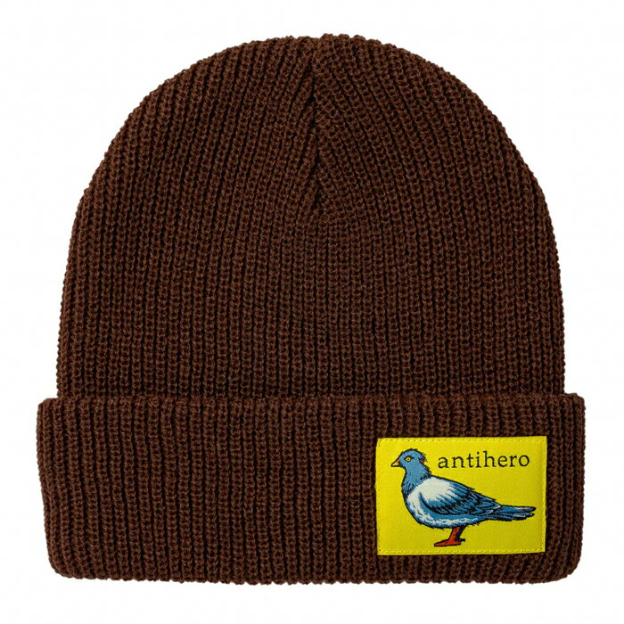 【BEANIE/ 帽子/ スケートボード】【送料無料】ANTIHERO SKATEBOARDS (アンチヒーロー・スケートボード) LIL PIGEON LABEL CUFF BEANIEBROWN / YELLOWビーニー / アンタイヒーロー