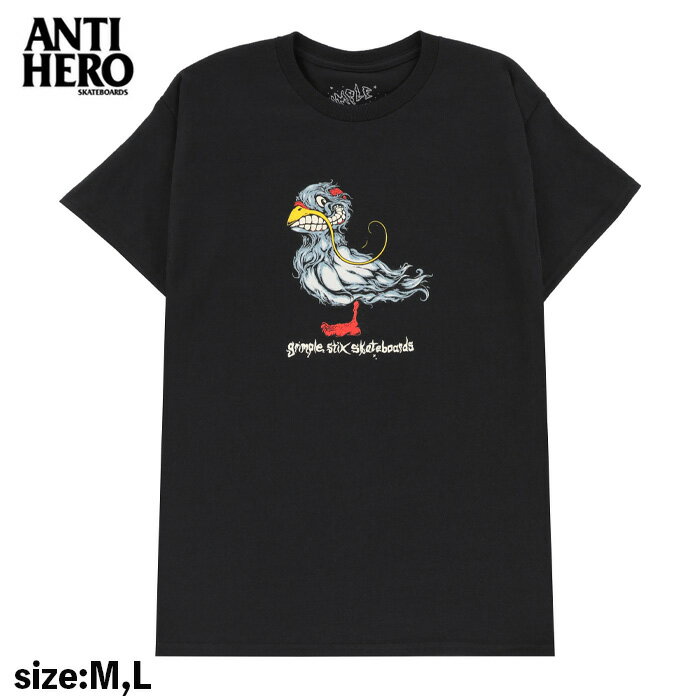 【期間限定!店内全商品ポイント10倍!※要エントリー】ANTIHERO アンチヒーロー Tシャツ スケボー 半袖 GRIMPLE PIGEON S/S T-SHIRT BLACK ストリート スケートボード