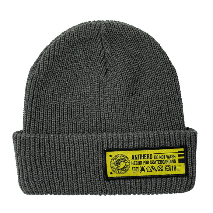 【BEANIE/ 帽子/ スケートボード】【送料無料】ANTIHERO SKATEBOARDS (アンチヒーロー・スケートボード) HECHO POR SKATEBOARDING CUFF BEANIE / CHARCOAL / YELLOWビーニー / アンタイヒーロー