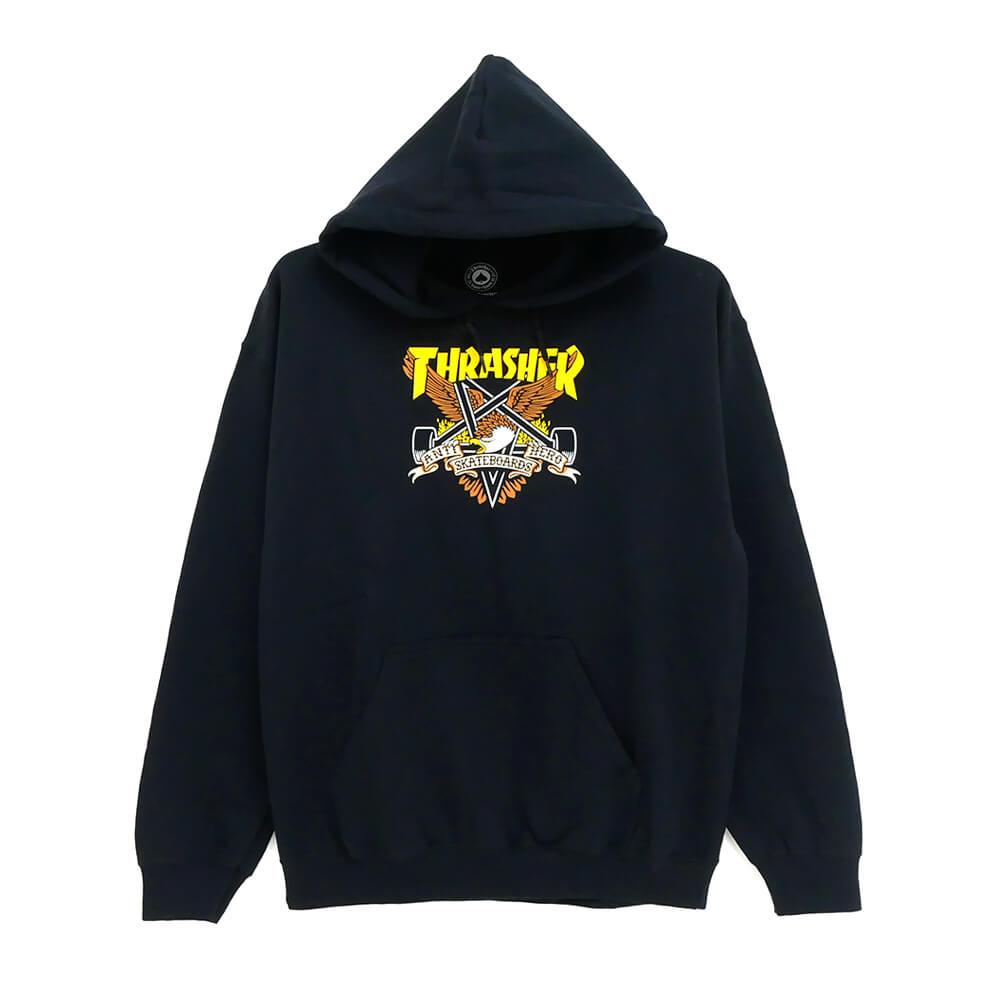 (セール)THRASHER HOOD スラッシャー パーカー THRASHER X ANTIHERO EAGLEGRAM BLACK(US企画) スケートボード スケボー