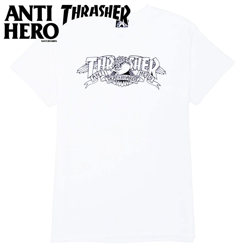 アンタイヒーロースケートボード ANTIHERO SKATEBOARDS × THRASHER MAG BANNER TEE ( ホワイト 白 WHITE ) アンタイヒーロースケートボードTシャツ ANTIHERO SKATEBOARDSTシャツ アンタイヒーロースケートボード半袖 THRASHERコラボ スラッシャーコラボ
