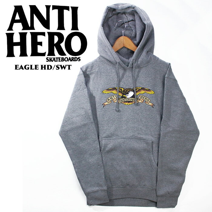 レビューでクーポン★[残りわずか/Sサイズのみ]アンタイヒーロー パーカー フ—ディー スウェット ANTIHERO EAGLE HD/SWT 34637 Gunmetal Heather Grey フード付き カンガルーポケット スケート スケーター 灰 グレー SB スケートボード メンズ 男性