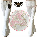 送料無料 レディース デニムパンツ ブーツカット ホワイト ANTIK DENIM ハンドステッチ 刺繍 アンティーク アンティックデニム 28インチ カジュアル 動きやすい 細見え ホワイト 白