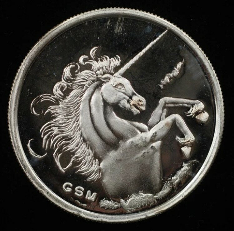 ヴィンテージ GSM ユニコーン - T&T Antiques チュラビスタ CA .999 1オンス シルバー ラウンド (64473)