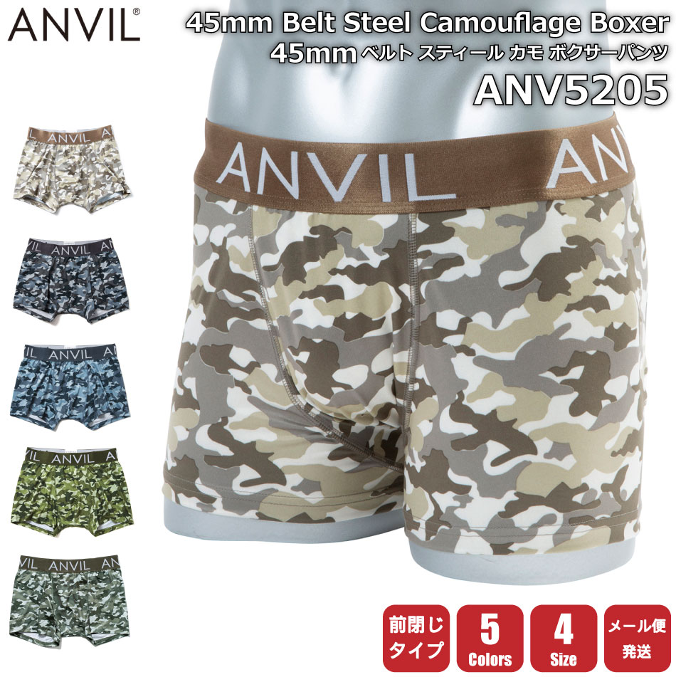 [10:00迄のご注文で当日発送アリ(店舗休業日を除く)] ANVIL アンビル アンダーウェア ボクサーカモフラージュ パンツ トランクス メンズ ショートパンツ シンプル 無地 見せパン ベルト幅 45mm 5色 4サイズ S M L XL コットン ANV5205 送料無料 ポイント消化
