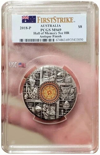2018 5 Oz Silver ANZAC 100th Anniversary Hall of Memory MS69 First Strike Coin.商品について流通/非流通額面 8ドル材質 銀発行年 2018年色 アンティーク仕上げ純度 0.999グレード MS 69発行枚数 300枚製造国/地域 オーストラリア認証 PCGS修正アイテム番号注意事項※以下の注意事項をご理解のうえ、ご購入ください■ 鑑定済みコイン・紙幣について各種コイン・紙幣の鑑定機関(NGC、PCGS、PMGなど)は、収集品の真贋鑑定およびグレーディングを行う専門機関です。鑑定後の商品は、専用ケース(スラブ)に封入され、状態を示すグレードが付与されます。■ グレードについてグレードはコイン・紙幣自体の状態を評価するものであり、ケース自体の品質や状態を保証するものではありません。製造・輸送時の影響により、以下のような状態が発生する場合がございます。- 軽微なスレ傷・拭き傷(特に光の角度で見えるもの)- ケース内部のホコリ・小さな異物(鑑定機関の検品基準を満たしている場合)- ラベルのズレ・わずかな傾きこれらは鑑定機関の基準内であり、返品・交換の対象とはなりませんのでご了承ください。■ ラベルの種類について各鑑定機関では、コイン・紙幣の状態や鑑定の結果に応じて異なるラベルが付与されます。- 通常ラベル(Standard/Regular):一般的なグレード付き鑑定済みコイン・紙幣- オーセンティック(Authentic):グレードなしで真贋のみ保証- 詳細グレード(Details):クリーニング跡やエッジのダメージがあるが本物と認定- 特別ラベル(Special Label):記念版や特定のデザインの限定ラベル - 例:NGC「Early Releases」「First Releases」、PCGS「First Strike」 などグレードやラベルの種類は、商品画像および説明文をご確認のうえ、ご購入ください。■ 在庫状況について当店の商品は海外から取り寄せております。ご購入のタイミングによっては在庫切れとなる場合がございます。その際はご連絡のうえ、ご注文をキャンセルさせていただく場合がございますので、あらかじめご了承ください。■ ご注文後のキャンセルについてご注文と同時に商品のお取り寄せを開始するため、お客様都合によるキャンセルは承っておりません。■ 配送についてお届けまでに通常2〜3週間ほどかかります。海外の祝日や天候、税関手続きにより通常より配送が遅れる可能性がございます。■ 保証について商品説明に英語で「保証(warranty)」と記載があっても、日本国内では適用されませんのでご了承ください。 当店では、商品到着後7日以内の初期不良に限り、対応させていただきます。 (返品規約の詳細については、楽天市場内の会社概要欄下部をご参照ください。)■ 商品の色・素材感について撮影環境やモニター設定により、実際の商品と色味や質感が異なる場合がございます。■ 価格変動について希少性の高い商品は市場価格の変動により、追加料金をお願いする場合がございます。追加料金に同意いただけない場合には、ご注文のキャンセルが可能ですので、ご安心ください。■ その他サービスについて海外製品の輸入代行も承っております。ショップに掲載されていない商品でもお探し可能ですので、お気軽にご相談ください。尚、業者販売(業販)や複数購入の場合、割引対応も可能です。ご希望の方はお問い合わせください。
