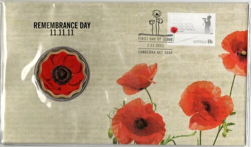 2011年 5ドル 戦没者追悼記念日コイン PNC レッドポピー ANZAC UNC オーストラリア レア 11.11.11