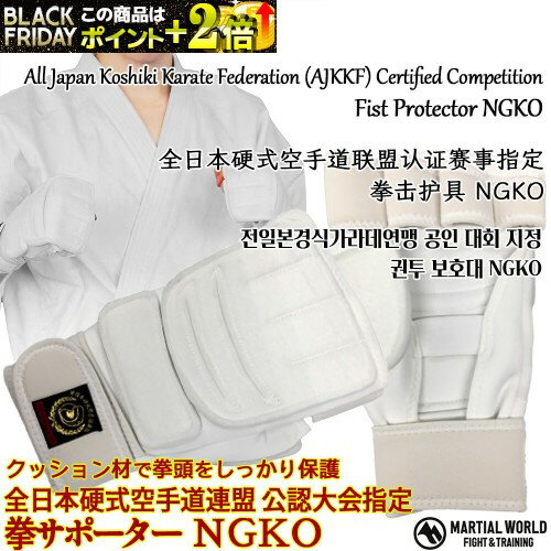 空手拳サポーター NGKO【マーシャルワールド MARTIAL WORLD】ホワイト/幼年〜一般 全硬連・全日本硬式空手道連盟公認 クッションタイプで拳頭をしっかり保護 Official knuckle protectors approved by AJKKF
