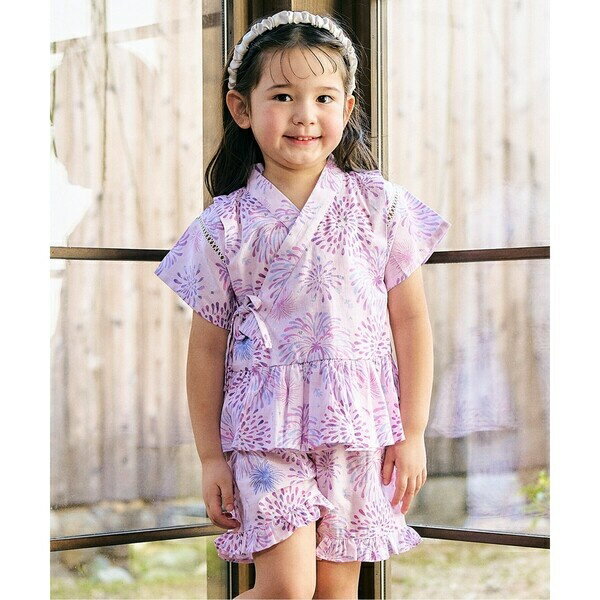 [型番:V375915]【apres les cours 浴衣甚平コレクション2025】毎年人気の甚平が今年も登場♪ペプラムやフリルのついたデザインでかわいくイメージに♪別売りの帯飾りや飾り帯、レース付け襟と合わせてオリジナルアレンジも。またお祭りだけでなく、ふだんのおでかけやルームウェアとして幅広いシーンでご利用いただけます♪同じ柄の浴衣と姉妹おそろいコーデもおすすめです!<お取り扱いのご注意>この商品のプリント部分は洗濯を繰り返すことにより、起毛・光沢が徐々に消失、ひび割れ、脱落することがあります。出来るだけ美しくご利用頂くために次のことにご留意下さい。○ 洗濯、保管の際、プリント面同士が重ならない様にご注意下さい。○ プリント部分のもみ洗いやタンブル乾燥機の使用はお避け下さい。○ 洗濯後、すみやかに広げて下さい。○ 脱水は弱く、形を整えてから干して下さい。○ プリント部分にアイロンを当てないで下さい。#apreslescours【サイズ情報】80:身丈34 身幅25 肩幅25 袖丈6.5 袖口幅14 ウエスト幅19 前股上17.5 股下5 足口幅20.5 腰幅3490:身丈36 身幅26 肩幅26 袖丈7 袖口幅14.5 ウエスト幅20 前股上17.5 股下6.5 足口幅21 腰幅35100:身丈39 身幅28 肩幅28 袖丈8 袖口幅15.5 ウエスト幅22 前股上18 股下9 足口幅21.5 腰幅37110:身丈42 身幅29 肩幅29 袖丈9.5 袖口幅16 ウエスト幅23 前股上18.5 股下10.5 足口幅22 腰幅38120:身丈45 身幅31 肩幅31 袖丈10.5 袖口幅16.5 ウエスト幅24 前股上19.5 股下12.5 足口幅23 腰幅40130:身丈48 身幅33 肩幅33 袖丈11.5 袖口幅17 ウエスト幅25 前股上21 股下15.5 足口幅24 腰幅42■カラー:5色展開サイズ情報は、下記の商品説明をご覧下さい。※( )で表記されている数字はヌードサイズです。ヌードサイズとは衣服を身につけない身体のサイズです。お客様ご自身の身体サイズと比較してお選びください。 ■素材: ラベンダー/ネイビーブルー/サックス/ピンク/アイボリー:平織下衣綿100%上衣綿100% ■お手入: 40℃を上限に洗濯機で洗濯、漂白剤を使用禁止、色物は同系の色と一緒、洗濯後直ちに取出し、日陰で吊り干 >>商品のお取り扱い方法 ■原産国: 中国【リンク】アプレのはんなりGIRLS甚平/アプレ レ クール(apres les cours)アイボリーラベンダーネイビーブルーピンクサックス画面上と実物では、多少色具合が異なって見える場合がございます。