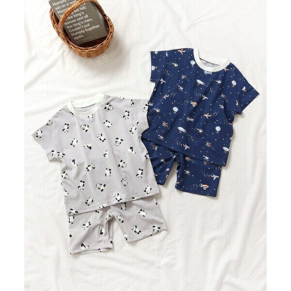 [型番:V258045]〈 apres les cours:ROOMWEAR 〉ゆるかわいいパンダ柄と飛行機や気球などのお空の乗り物柄どちらも総柄デザインの半袖パジャマ♪夏のおやすみ時間のお供におすすめです*<お取り扱いのご注意>この商品は着用中の摩擦や洗濯により毛羽の乱れ、毛羽脱落、毛玉が生じることが有ります。できるだけ美しくご利用頂く為に次のことにご留意下さい。○毛玉は毛玉取り器またはハサミで丁寧にカットして下さい。○毛羽が他に付着した際はテープやブラシで除去して下さい。○他の製品とは洗わず、単独でお洗濯して下さい。○タンブル乾燥はお避け下さい。この商品は顔料プリントを使用しています。次の事にご留意の上、お買い求めください。○着用の際、摩擦により他の物に移染することがあります。また、汗や雨で湿った場合も移染しますのでご注意下さい。○淡い色との重ね着には注意して下さい。○洗濯の際、色落ちしますので裏返しにして単品洗いをして下さい。○他の商品に移染する可能性がありますので濡れたままの放置はお避け下さい。○他の衣類に色移りした場合は直ちに洗濯して下さい。○ご使用を繰り返すことにより色が徐々に落ち白っぽくなります。○色の出方・風合いが一枚ずつ異なりますが、これはこの加工の特徴です。#apreslescours【サイズ情報】80:身丈34 身幅35 肩幅32 袖丈5 袖口幅11.5 ウエスト幅19 前股上19.5 股下(5分丈)6.5 足口幅15.5 腰幅3290:身丈36 身幅36 肩幅33 袖丈5.5 袖口幅12 ウエスト幅20 前股上20 股下(5分丈)8 足口幅16 腰幅33100:身丈39 身幅38 肩幅35 袖丈6.5 袖口幅13 ウエスト幅22 前股上21 股下(5分丈)11 足口幅17 腰幅35110:身丈42 身幅39 肩幅36 袖丈8 袖口幅14 ウエスト幅23 前股上22 股下(5分丈)13 足口幅17.5 腰幅37120:身丈45 身幅41 肩幅38 袖丈9 袖口幅15 ウエスト幅24 前股上23 股下(5分丈)15.5 足口幅18.5 腰幅39130:身丈48 身幅43 肩幅40 袖丈10 袖口幅16 ウエスト幅25 前股上24 股下(5分丈)18 足口幅20 腰幅41■カラー:グレー、ネイビーブルーサイズ情報は、下記の商品説明をご覧下さい。※( )で表記されている数字はヌードサイズです。ヌードサイズとは衣服を身につけない身体のサイズです。お客様ご自身の身体サイズと比較してお選びください。 ■素材: ネイビーブルー/グレー:天竺トップス:-本体:綿60% ポリエステル40%衿ぐり部分:綿58% ポリエステル38% ポリウレタン4%パンツ:綿60% ポリエステル40%トップス本体:綿60% ポリエステル40%衿ぐり部分:綿58% ポリエステル38% ポリウレタン4%パンツ綿60% ポリエステル40% ■お手入: 40℃を上限に洗濯機で洗濯、デリケートアイテムモード、ネット使用、漂白剤を使用禁止、色物は同系の色と >>商品のお取り扱い方法 ■原産国: 中国パンダ・乗り物柄パジャマ 5分丈/アプレ レ クール(apres les cours)グレーネイビーブルー画面上と実物では、多少色具合が異なって見える場合がございます。