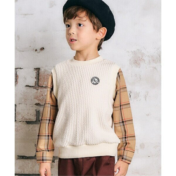 [型番:V406065]apres les cours(アプレレクール)の長袖Tシャツ「【リンク】ベストドッキングTシャツ」は、ナチュラルなスタイルにさりげなくデザインをプラスしたおしゃれアイテム*#apreslescours【サイズ情報】80:身丈34 身幅32 肩幅21 袖丈(10分丈)28.5 袖口幅890:身丈36 身幅33 肩幅22 袖丈(10分丈)31 袖口幅8100:身丈39 身幅35 肩幅24 袖丈(10分丈)34.5 袖口幅8.5110:身丈42 身幅36 肩幅25 袖丈(10分丈)39 袖口幅8.5120:身丈45 身幅38 肩幅27 袖丈(10分丈)43 袖口幅8.5130:身丈48 身幅40 肩幅29 袖丈(10分丈)47 袖口幅9■カラー:ベージュ、ブラックサイズ情報は、下記の商品説明をご覧下さい。※( )で表記されている数字はヌードサイズです。ヌードサイズとは衣服を身につけない身体のサイズです。お客様ご自身の身体サイズと比較してお選びください。 ■素材: ベージュ/ブラック:先染めチェック/ジャガードブラック身頃:綿75% ポリエステル24% ポリウレタン1%袖:綿100%リブ:綿96% ポリウレタン4%ベージュ身頃:綿75% ポリエステル24% ポリウレタン1%袖:ポリエステル65% レーヨン35%リブ:綿96% ポリウレタン4% ■お手入: 40℃を上限に洗濯機で洗濯、デリケートアイテムモード、ネット使用、漂白剤を使用禁止、色物は同系の色と >>商品のお取り扱い方法 ■原産国: 中国【リンク】ベストドッキングTシャツ/アプレ レ クール(apres les cours)ベージュブラック画面上と実物では、多少色具合が異なって見える場合がございます。