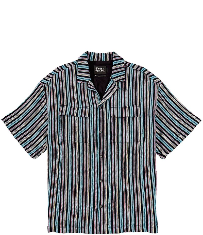 スコッチアンドソーダ メンズ トップス シャツ Scotch & Soda Stripe Short Sleeve Woven Camp Shirt Aqua Blue Stripe ブルー