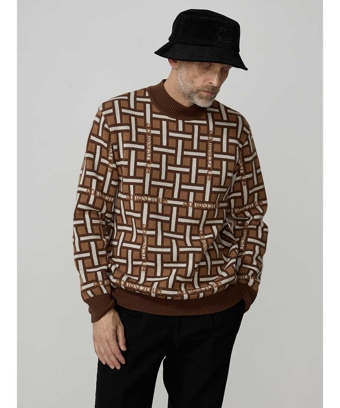 SLICK ( スリック ) モヘア混アブストラクト クルーネック ニット - モヘアニット( Shaggy Mohair Abstract Jaquard Pullover Knit )- ブラック / ブラウン