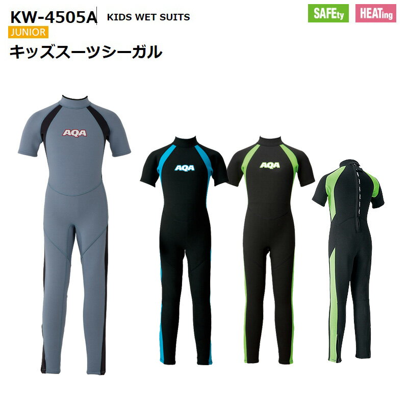 【本四九限定送料無料】 [KIDS WET SUITS] KIDS SUITS SEAGULL2 キッズスーツシーガル2 KW-4505A キッズ用でも本格的 2mm厚のウェットスーツ スノーケリングに最適! ラッシュガードだけでは得られない保温力 水が大好きな子供たちは寒くても 水から離れたくない! そんな場面で威力を発揮するウェットスーツ 半袖長ズボンのシーガルタイプウェットは 足首にファスナーが付き、お子様でも無理なく 着脱が可能、運動性もよく、子供の動きを 妨げません 2mmのウェット生地と足首まで保護する タイプなので、寒さや低体温症、そしてクラゲやすり傷やケガ から子供たちを守ります! ダイビングやシュノーケリングはもちろん、プールや川でのアクティビティやマリンスポーツ、海遊びにも活躍します。 ○2mmノーマルジャージ ※足首ファスナー付き ○サイズ:100/110/120/130/140/150/160 ○カラー:スモークブルーxマットブラック/ブラックxライム/ブラックxライトブルー 【ご注意】 ※北海道、沖縄方面は追加送料500円となります。 メーカー希望小売価格はメーカーカタログに基づいて掲載していますKW-4505A アクア AQA ウェットスーツシーガル ジュニア ウェット キッズ用 女の子男の子 保温 半袖