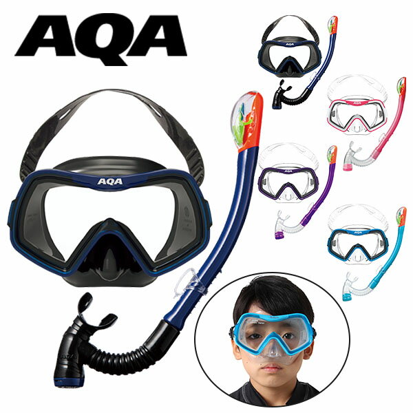 送料無料 AQA エーキューエー 2点セット 水中マスク スノーケル アカラソフト&ビキシードライスペシャルシリコン キッズ ジュニア 子供 4~9才 シュノーケル スノーケリング シュノーケリング 海水浴 海 川 KZ-9008