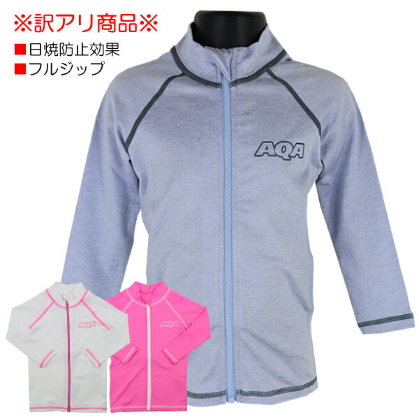 【訳アリ:汚れ・在庫処分 等】AQA ラッシュLSジップ JR2 ラッシュガード 日焼け防止 水着 子供 キッズ 長袖 フルジップ 90-150cm 入園 入学 通園 通学 水泳 【送料無料(税込1000円のお買上げが条件)】