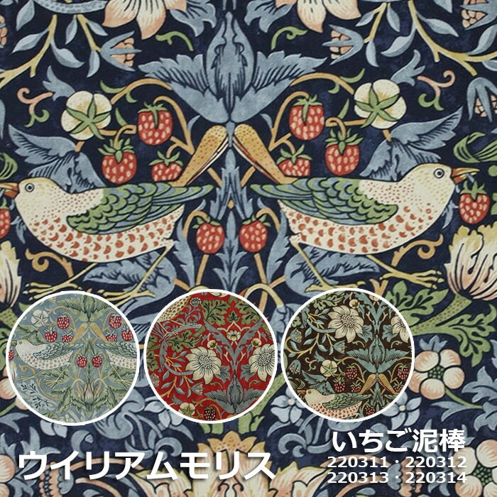 ウイリアムモリス プリント生地 生地販売 切売り販売 布地のみ 綿100% 手芸用 オリジナルグッズ作り パッチワーク用 イギリス製 輸入生地 ファブリック 10cm単位 切り売り 約137cm幅 (10cmあたりの単価) Archive Prints いちご泥棒 (MA) (220311〜220315) 引っ越し 新生活