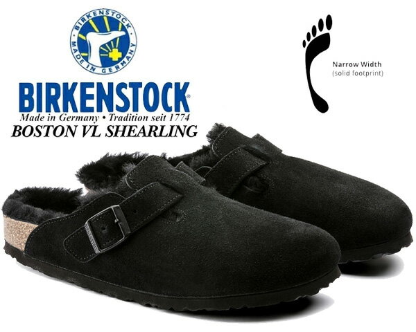 お得な割引クーポン発行中!!【送料無料 ビルケンシュトック ボストン シアリング ナロー】BIRKENSTOCK BOSTON VL/SHEARLING (NARROW FIT) BLACK 0259883 ナローフィット レディース サンダル ミュール スエードレザー ブラック クロッグ