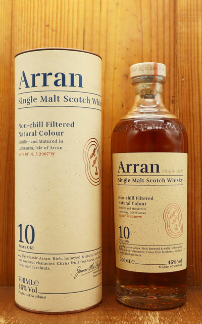 アラン シングルモルト 10年 (Arran Single Malt 10 Year Old) 700ml 46度 | ウイスキー ウィスキー シングルモルト スコッチ バーボン樽 シェリー樽 ノンチルフィルター 無着色 スコッチウイスキー 高評価 ギフト プレゼント 贈り物 父の日 誕生日