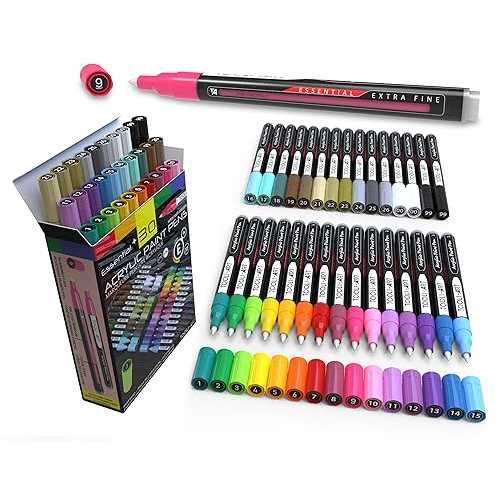 Acrylic t Pens Assorted Vibrant Markers for Rock ting, Canvas, Glass, Mugs, Wood, Fabric, Metal, Ceramics. Non Toxic, Quick Dry, Multi-Surface, Lightfast (EXTRA FINE) TOOLI-ART Acrylic t Pens Assorted Vibrant Mark