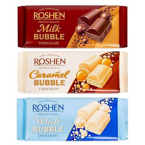 Roshen "Aerated" Assorted Flavors of White, Caramel and Milk chocolate bars, 80 grams each flavor (Variety Pack)
