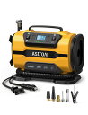 AstroAI エアホークプロ 電動エアコンプレッサー コードレス20V 充電式エアコンプレッサー 電動空気入れ 共通バッテリー付き ボール 自動車 自転車 トラック バイク 浮き輪適用 充電式 バッテリー LEDライト付き 日本語取扱説明書付き イエロー