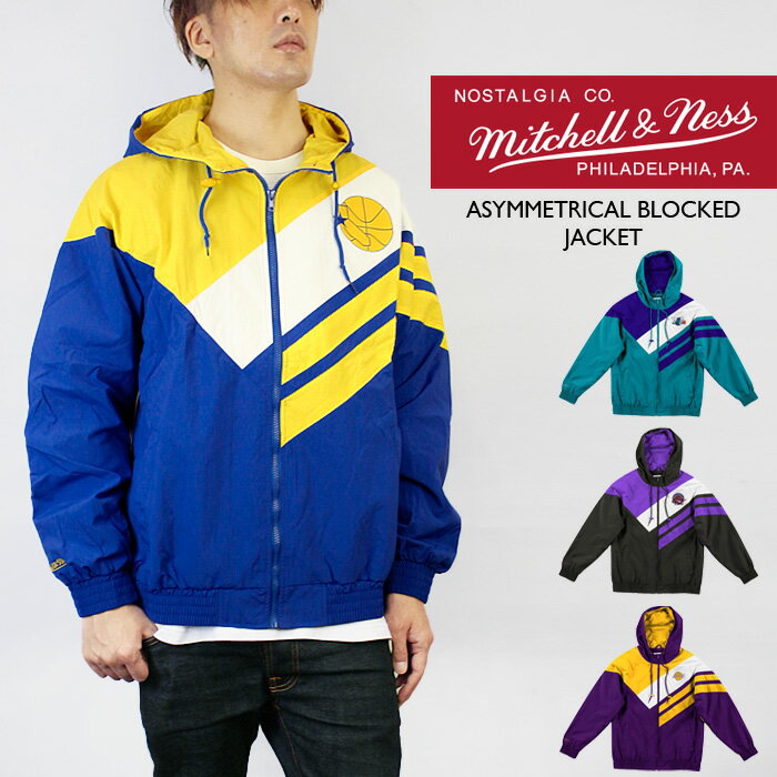 レビューでクーポン★ミッチェル&ネス ジャケット MITCHELL & NESS ASYMMETRICAL BLOCKED JACKET kobe Blue Teal Purple Yellow Black バスケ ライトウェイトサテンジャケット トラックジャケット 大きいサイズ 秋冬 メンズ 男性