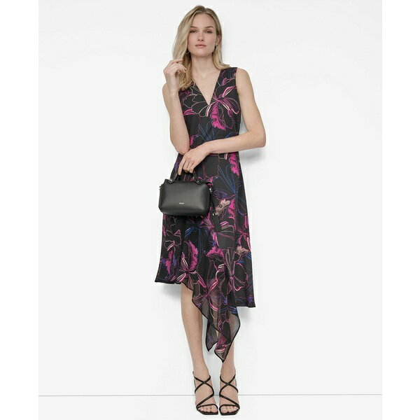 ダナ キャラン ニューヨーク レディース ワンピース トップス Women's V-Neck Sleeveless Asymmetrical Midi Dress Black Multi