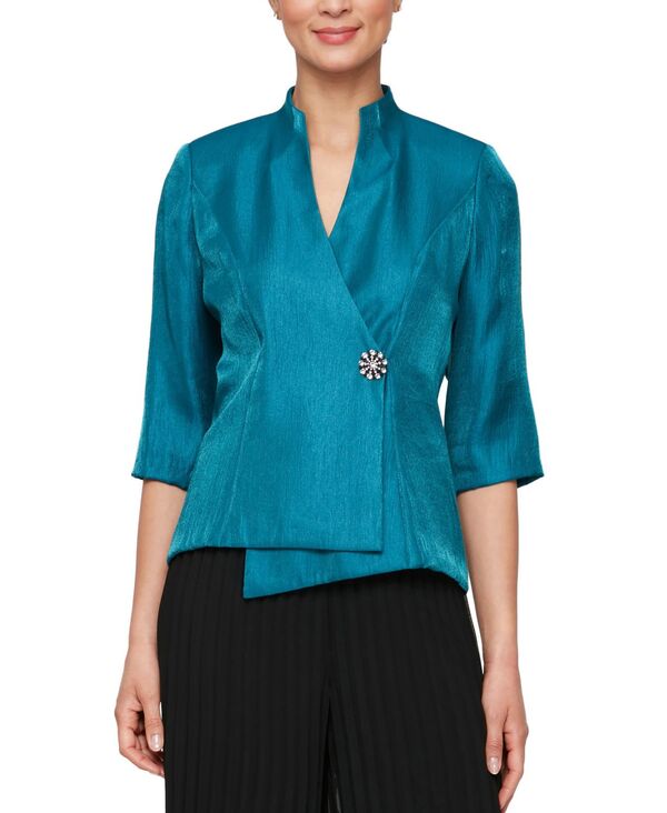 アレックスイブニングス レディース トップス シャツ アシンメトリー ブラウス Alex Evenings Women's Asymmetrical Wrap Blouse Teal ティール