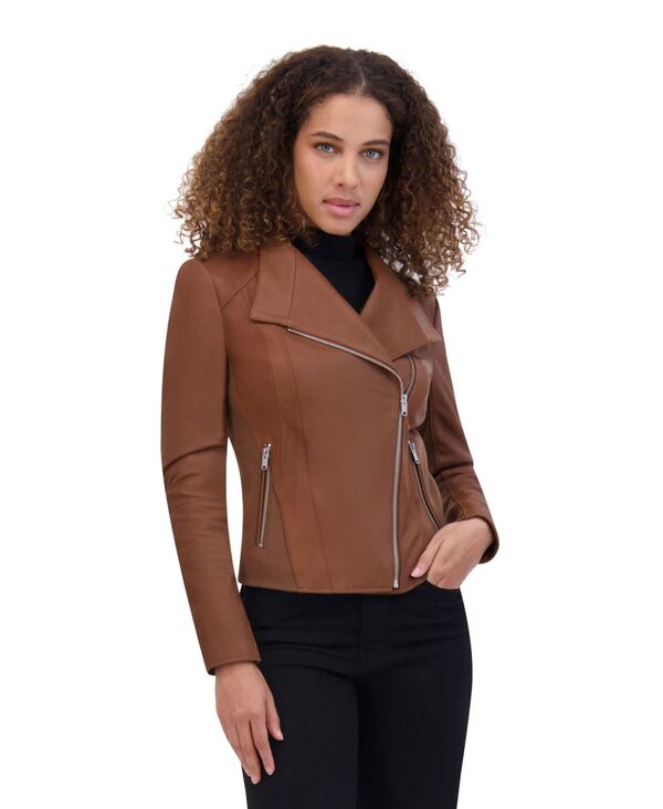 ケンジー レディース アウター ジャケット・ブルゾン アシンメトリー ジャケット kensie Women's Asymmetrical PU Peplum Moto Jacket with Quilting Details Chocolate チョコレート