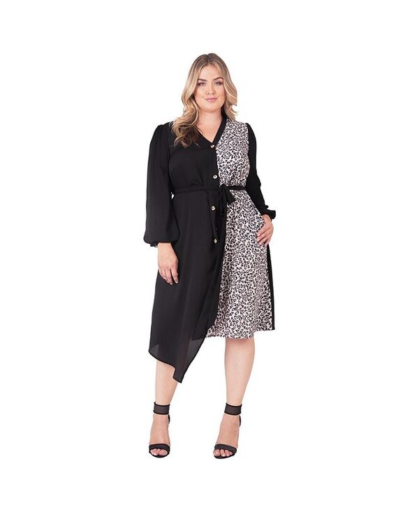 スタンダーズ アンド プラクティス レディース トップス ワンピース アシンメトリー プラスサイズ Standards & Practices Plus Size Asymmetrical Hem Button-Up Wrap Lantern Sleeve Dress Brown leopard print ブラウン