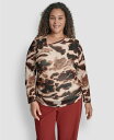 ダナ キャラン ニューヨーク レディース トップス シャツ アシンメトリー プラスサイズ ギャザー DKNY Plus Size Asymmetrical Neck Side Ruched Long Sleeve Top Blonde Truffle Multi マルチカラー
