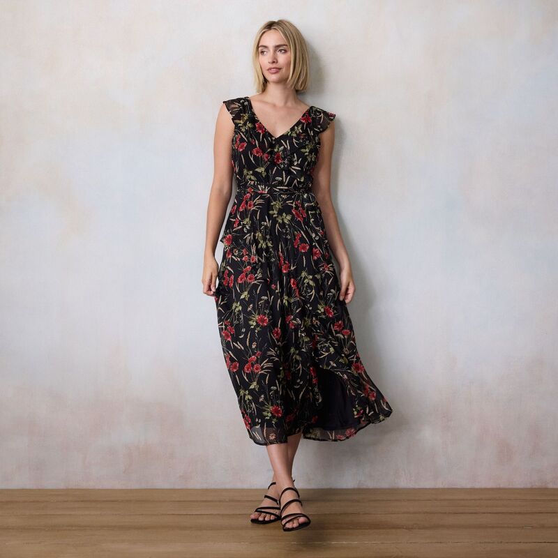 【送料無料】 LC Lauren Conrad レディース ワンピース トップス Women's LC Lauren Conrad Asymmetrical Ruffle Maxi Dress Black Maida Meadow
