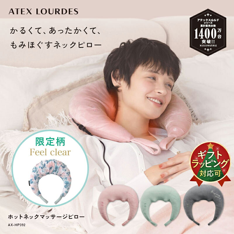 ご注文内容についてお客様への確認が必要な場合、出荷にお時間をいただきます。 商品数量とご購入ラッピング枚数が一致しない場合、商品の包装はせず、ラッピングバッグを同梱してお送りいたします。 ラッピングを商品とご一緒に注文されていない場合、ラッピングをせずに商品を出荷いたします。詳しくはこちらをご覧ください。 【2025年春夏 限定柄登場!!】ひんやり、とろける 2025年春夏限定柄が登場!華やかな見た目とひんやり気持ちい手触りで、プレゼントにオススメです。 ルルドホットネックマッサージピローAX-HP392は、軽量でコンパクトな設計により、使用時の負担を軽減し、どこでも簡単にリラクゼーションを楽しむことができます。特にプロもみ技術を採用したウエーブ型のもみ玉が、首、背中、肩、腰、足といった体の各部を効果的にマッサージし、深いリラクゼーションを提供します。 このマッサージピローは、そのヒーター機能により温かさを提供しながら筋肉をほぐすため、より効果的なマッサージ体験が可能です。家庭での使用はもちろん、プレゼントとしても最適で、母の日や誕生日など、特別な日のギフトにも喜ばれること間違いなしです。 3カラー展開で男性でも女性でも、日々の疲れを感じるすべての人におすすめの製品です。 毎日の生活において、簡単に使えて実用的なこのマッサージピローで、心地よい時間をお過ごしください。寝ながらでも使用できる手軽さで、リラックスしたい時にいつでも最適なマッサージを提供します。 ▼TVで紹介されました ・2024.6.22 せやねん!で紹介されました。 品名 ホットネックマッサージピロー 品番 AX-HP392FC / フィールクリア AX-HP392PK / ピンク AX-HP392GN / グリーン AX-HP392GR / グレー 販売名 ネックマッサージャー P92 医療機器認証番号 306AABZX00001000 使用目的又は効果 あんま、マッサージの代用。一般家庭で使用すること。 (疲労回復、 血行をよくする、 筋肉の疲れをとる、 筋肉のこりをほぐす、 神経痛、筋肉痛の痛みの緩解) 仕様 ■素材: 本体:ABS、ウレタンフォーム 内カバー:ポリエステル100% 内カバー施療部:ナイロン80%、ポリウレタン20% 本体カバー:品質表示タグ参照 ■電源:AC100V 50/60Hz ■消費電力:18W(ヒーター3W) ■もみ玉回転数:約23 〜 33回/分 ■タイマー:15分自動オフ ■付属品:ACアダプター ■生産国:中国 ■保証期間:1年 サイズ・重量 ■本体サイズ:(約)W410×L380xH130(mm) ■重量:(約)800g(アダプター含まず) ■電源コード:(約)1.8m 梱包仕様 ■化粧箱サイズ:(約)W310×L120×H280(mm) ■重量:(約)1.3kg 関連キーワード 20代 30代 40代 50代 60代 70代 大人 男性 女性 彼氏 彼女 お父さん 父親 お母さん 母親 ギフト プチギフト プレゼント お祝い お返し クリスマス バレンタインデー ホワイトデー 父の日 母の日アテックスの人気ネックマッサージャー その他のネックマッサージャーをみる→